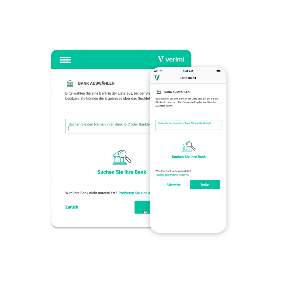 - Ihre Identität wird auf Basis der Bankdaten bestätigt