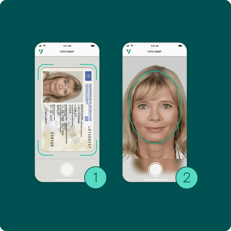 Beim FotoIdent-Verfahren fotografieren Sie Ihren Ausweis und erstellen ein Selfie. Das System prüft automatisch, ob die Daten zusammenpassen.